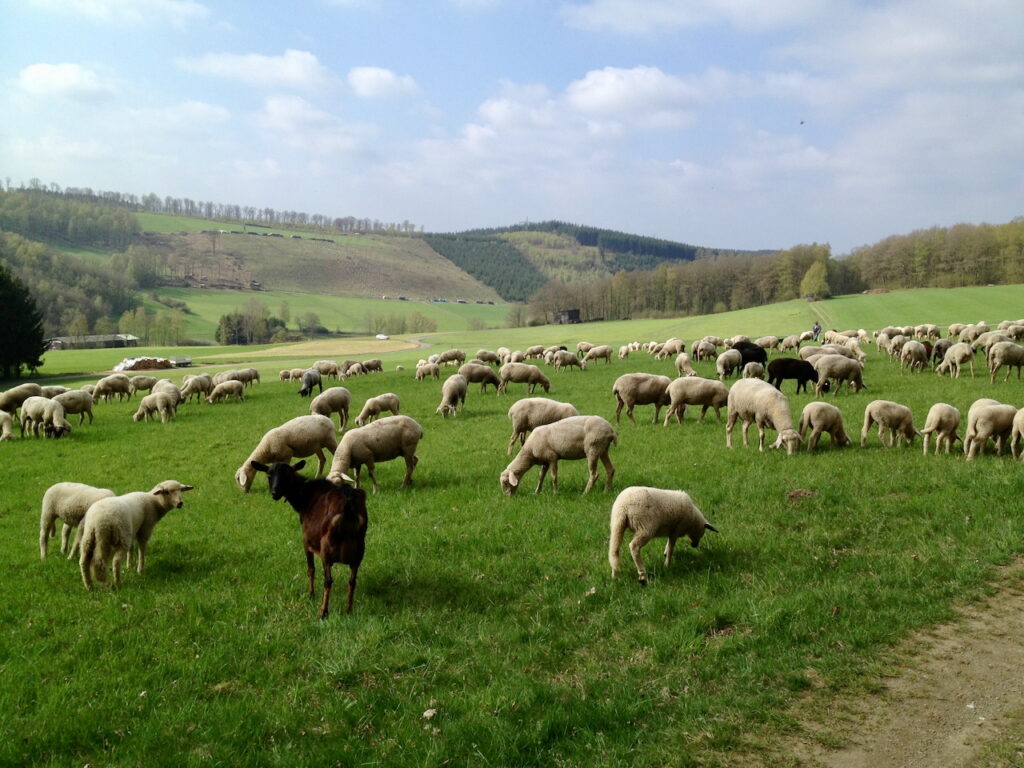 Die Sonne scheint kräftig, und das Bergische Land zeigt sich noch einmal von seiner schönsten Seite. Immer wieder bleibe ich stehen, blicke über Felder, Hügel, Wälder – meine Heimat, wie ich sie liebe. Gegen Mittag ist es richtig warm, mein Schritt wird leichter, obwohl ich die vergangenen vier Tage durchaus in den Beinen spüre.