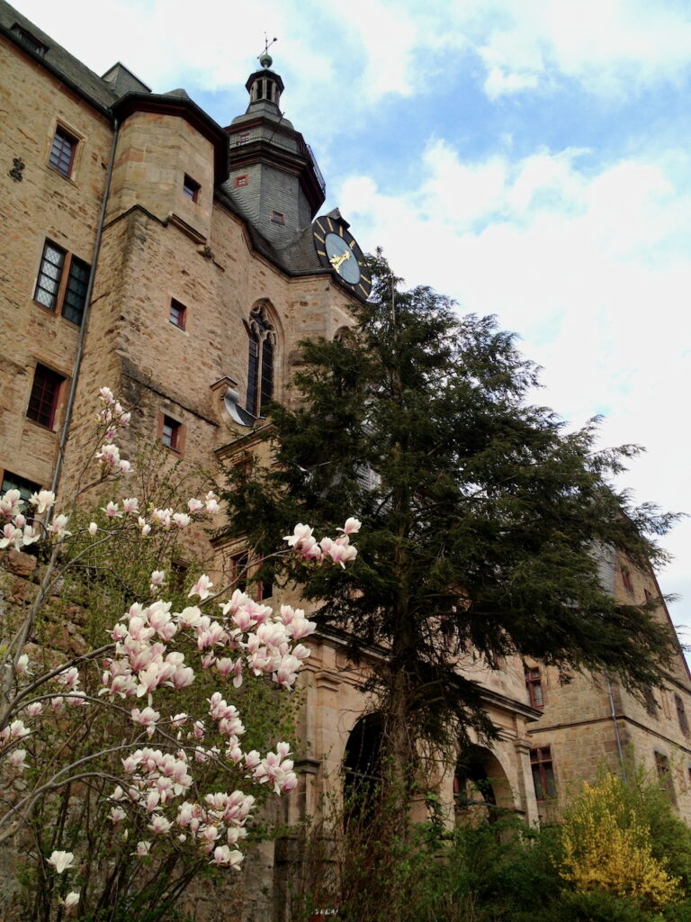 Ich starte in Marburg bei frischen 6 °C und etwas Sonnenschein. Der Himmel ist wolkig, aber freundlich – perfektes Pilgerwetter. Der Weg führt mich zunächst am Landgrafenschloss Maruburg vorbei.
