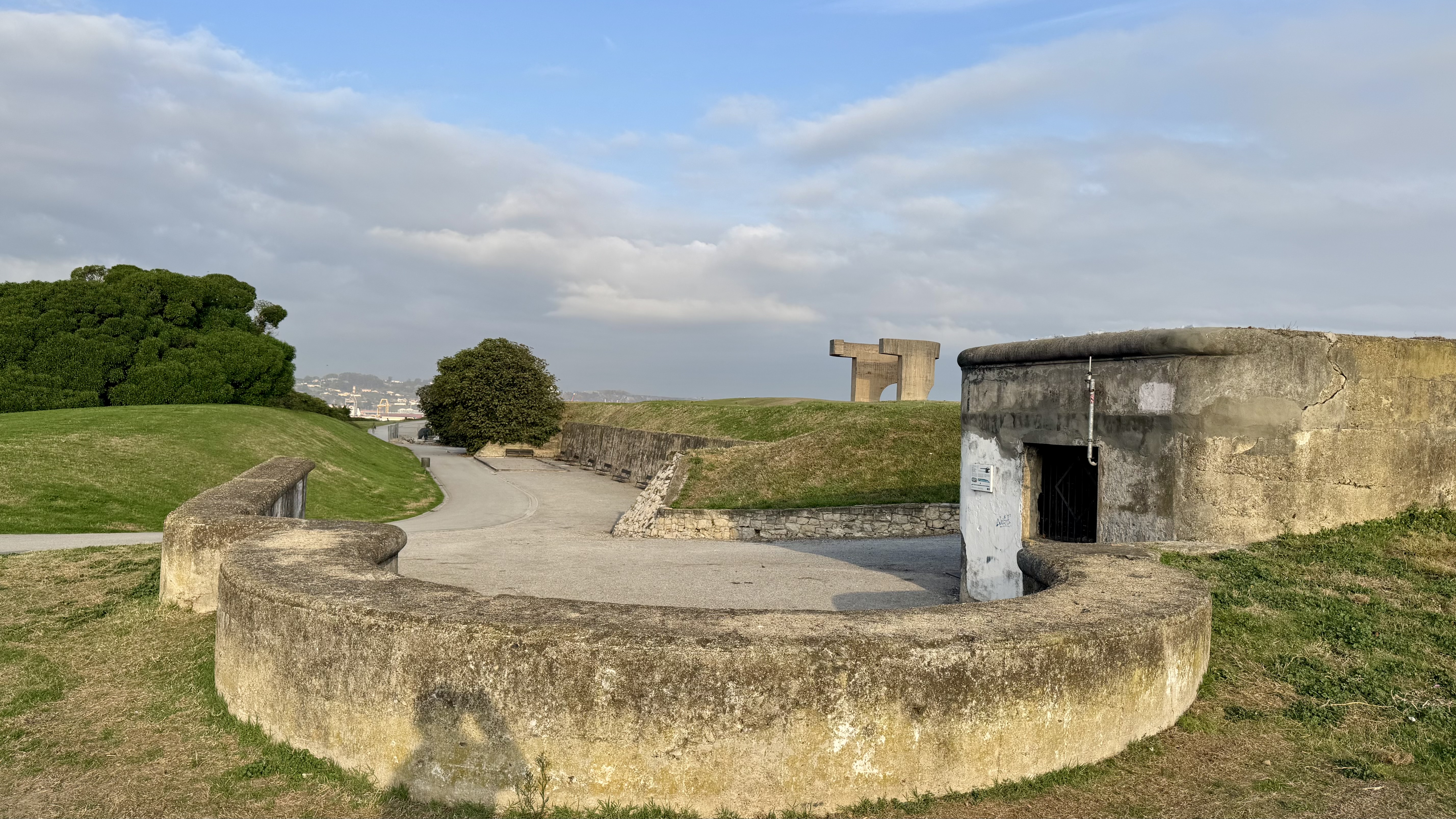Auf der Hochebene stößt man auf die Überreste der Batería Alta de Santa Catalina aus dem 18. Jahrhundert, die einst Teil der Küstenverteidigung war. Von hier aus schützten Kanonen den Hafen vor feindlichen Angriffen. Heute bilden die alten Geschützstellungen zusammen mit der modernen Skulptur „Elogio del Horizonte“von Eduardo Chillida einen der schönsten Aussichtspunkte der Stadt. Das monumentale Beton-Kunstwerk rahmt den Himmel und das Meer wie ein Fenster und symbolisiert den Dialog zwischen Mensch, Raum und Horizont.