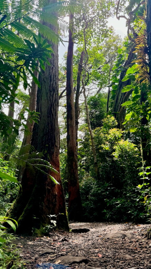 Ein neuer Tag, ein neues Abenteuer! Mit einem Uber fahren wir ins Manoa Valley, wo uns eine kleine Wanderung zu den Manoa Falls erwartet. Der etwa 1,3 km lange Weg führt durch dichten Regenwald, vorbei an riesigen Farnen und Lianen – wir fühlen uns wie in einem Film und warten nur darauf, dass uns ein T-Rex anspringt . Am Ende erwartet uns ein atemberaubender Wasserfall, der sich inmitten üppiger Vegetation in ein Becken ergießt. Ein friedlicher, mystischer Ort, der uns absolut den Atem raubt und staunen lässt. Und das nur 15 min Autofahrt von Honolulu entfernt.