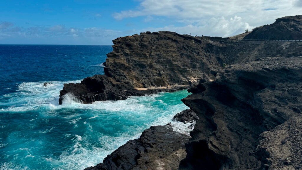 Nun wird es Zeit für Entspannung: Wir fahren zum Lanikai Beach, dessen feiner, weißer Sand und türkisblaues Wasser wie aus einem Bilderbuch wirken. Danach halten wir am Waimanalo Beach, wo wir fast allein sind – ein Geheimtipp für alle, die Ruhe suchen. Den krönenden Abschluss bildet der Makapu‘u Beach Park, wo wir beobachten, wie die Wellen spektakulär gegen die Lavafelsen brechen. Ein perfekter Roadtrip voller Kontraste und Schönheit!