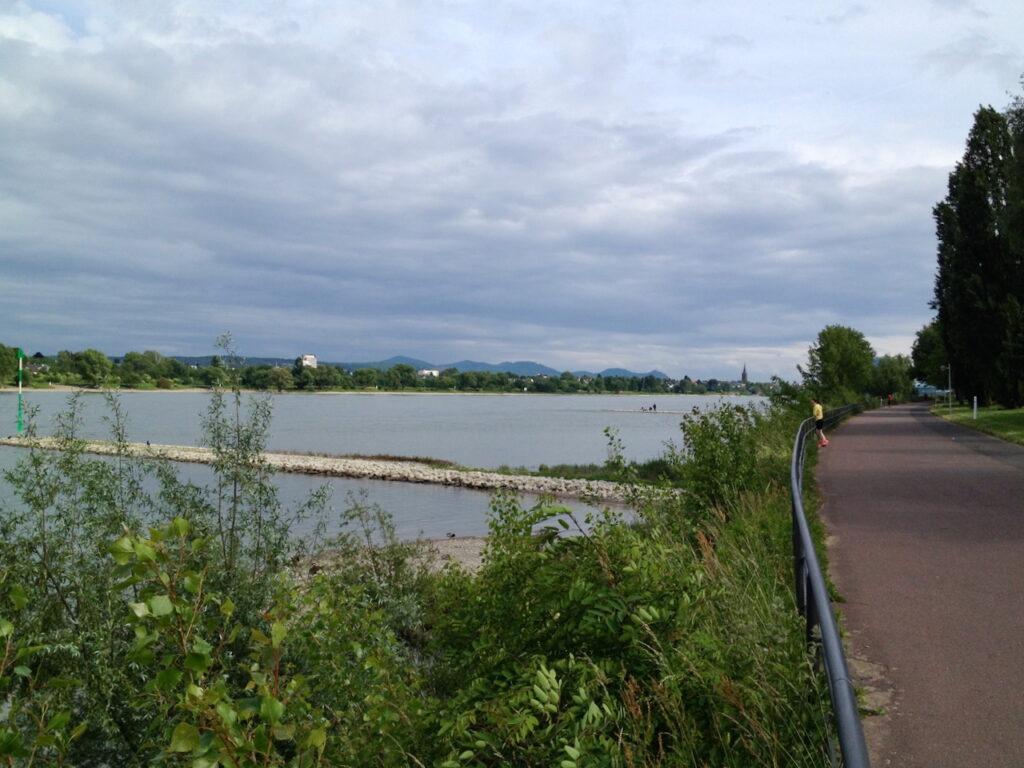 Die Sonne begleitet mich auf dieser Etappe. Nicht jeder Abschnitt ist idyllisch – besonders zwischen Bonn und Bad Godesberg überwiegt die Zweckmäßigkeit.