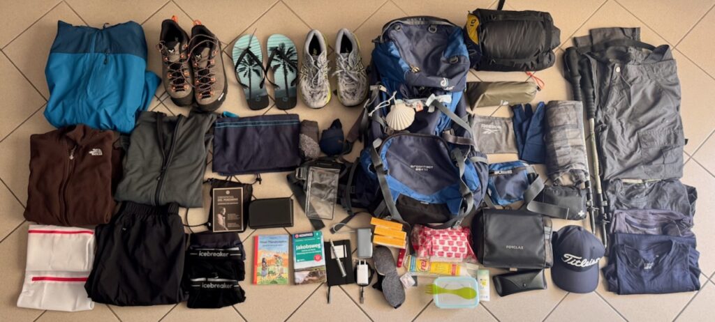 Mein Rucksack steht inzwischen gepackt in der Ecke. Alles, was ich für diese Reise brauche, passt hinein – und trotzdem bringt er knapp 10 Kilo auf die Waage. Ich habe gespart, reduziert, aussortiert und immer wieder überlegt: Was brauche ich wirklich? Was kann ich loslassen? Am Ende ist es genau diese Vorbereitung, die schon jetzt Teil des Pilgerns ist: sich zu beschränken, Ballast abzuwerfen und nur das Nötigste mitzunehmen.