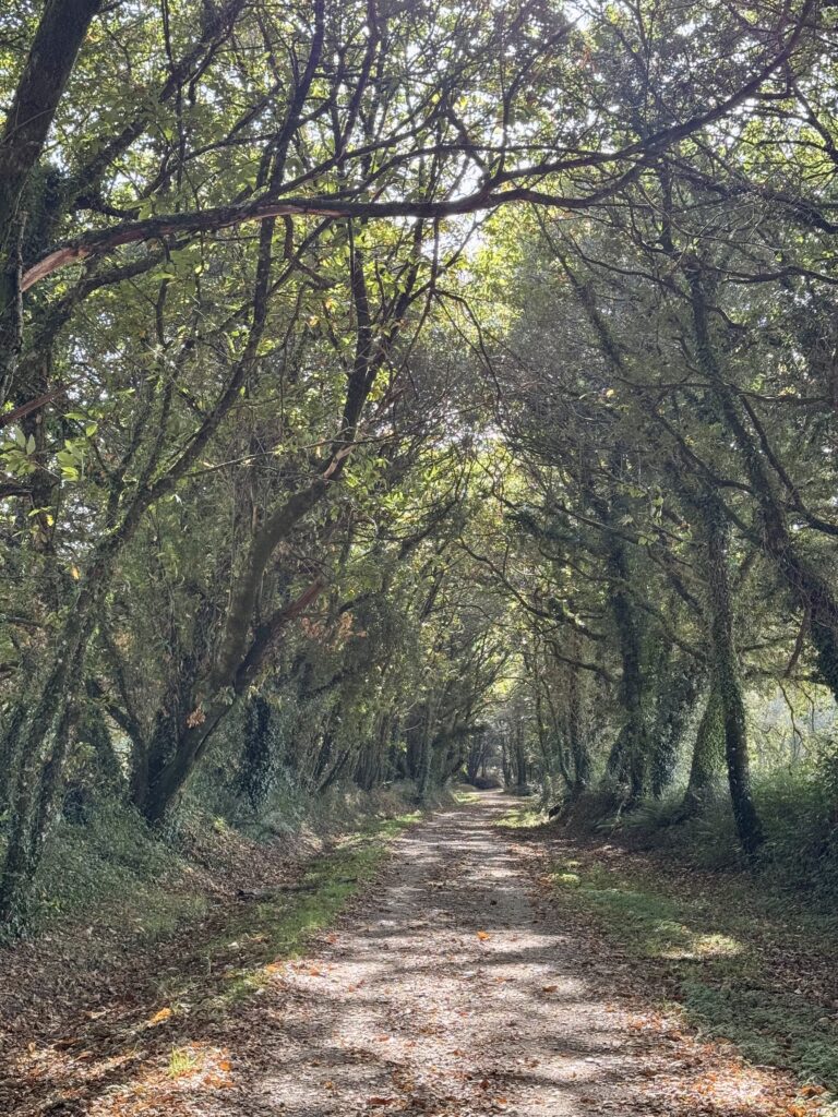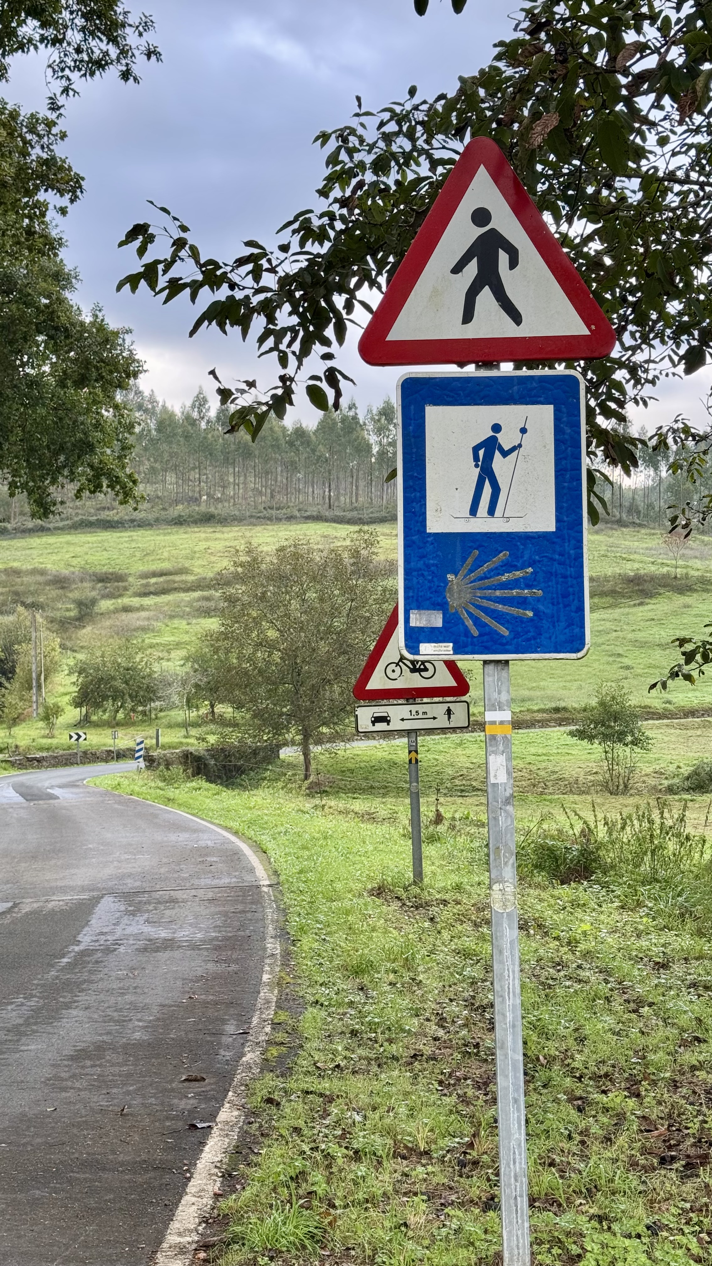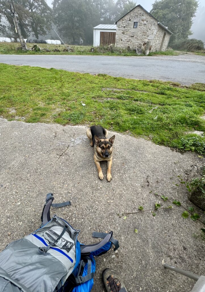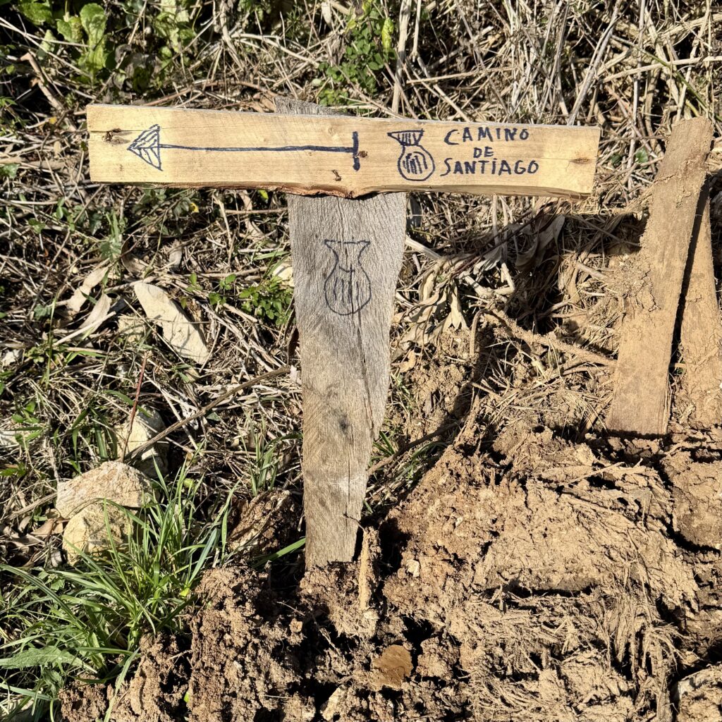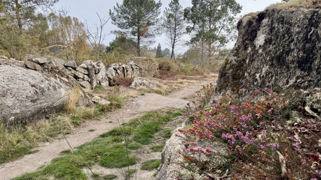 Der heutige Weg bietet alles, was Pilgern ausmacht: Abwechslung, Stille, Anstrengung und kleine Momente der Freude. Der Untergrund wechselt ständig – Waldwege, Schotter, Asphalt, Wiesenpfade – und führt mich stetig in Richtung Sobrado.