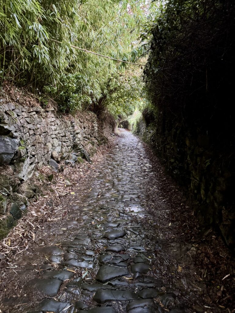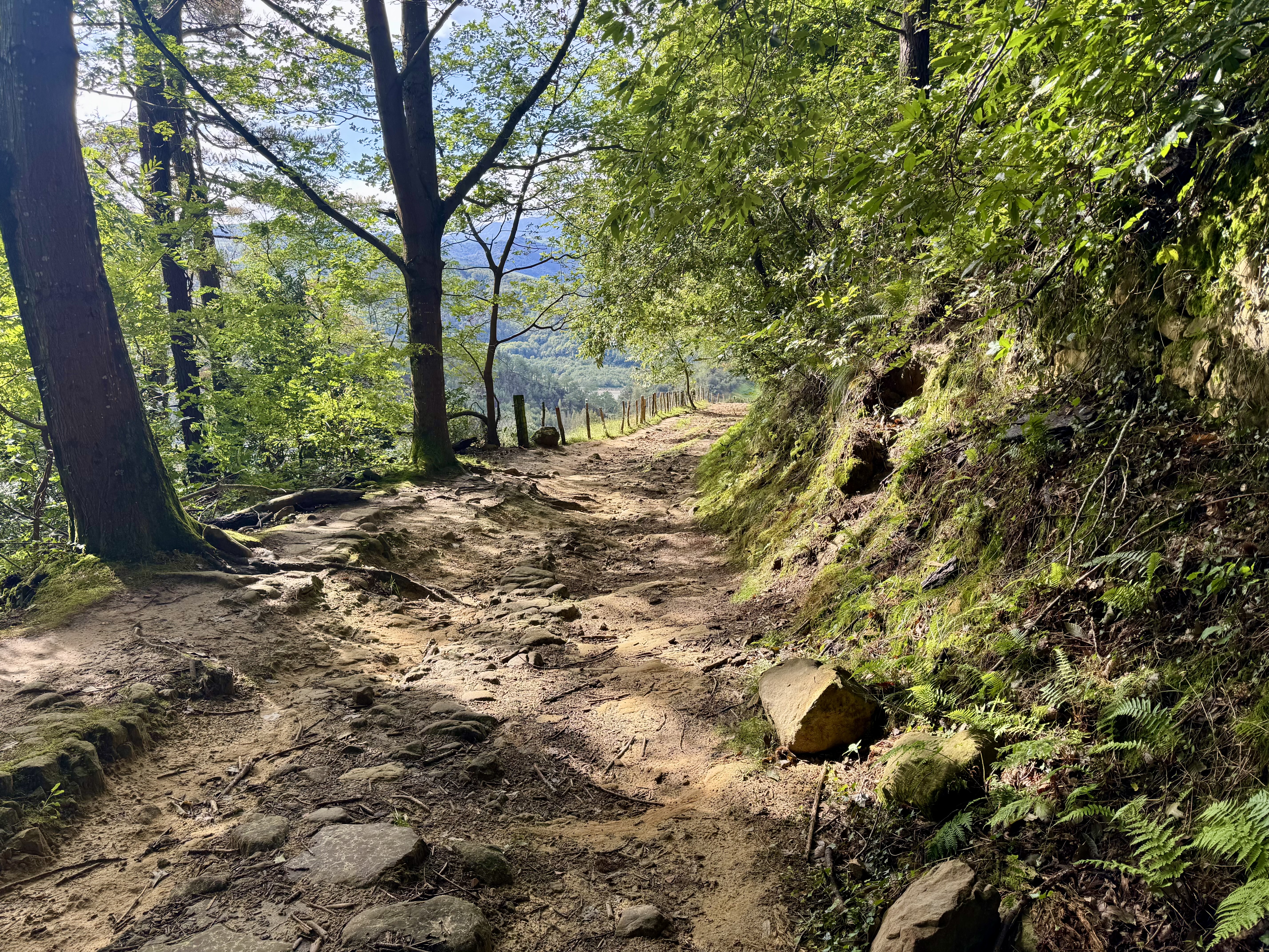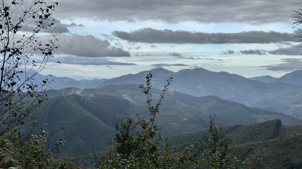 Heute verlässt der Camino die Küste und führt für nun die nächsten 80 Kilometer durchs Landesinnere bis Bilbao– leider heute bei Dauerregen bis weit in den Nachmittag hinein. Der Tag beginnt im Dunkeln durch ein Waldstück, anschließend geht es gefühlt endlos bergauf auf teils abenteuerlichen Pfaden.