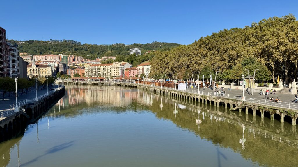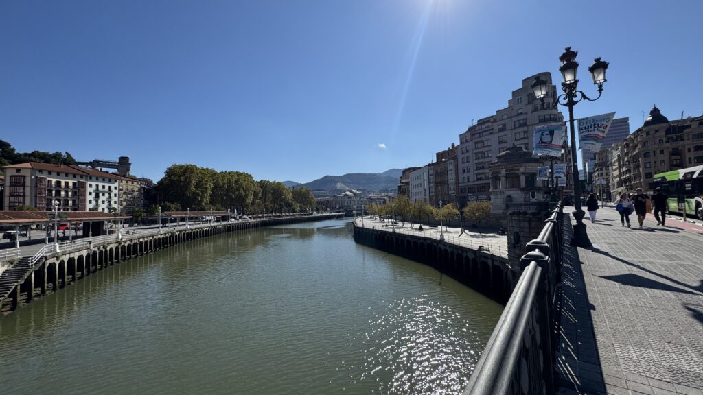 Von Küste ist heute keine Spur – stattdessen begleitet mich der Nervión, der sich durch Bilbao schlängelt und bis nach Portugalete zieht. Wasser ist also trotzdem reichlich da, wenn auch ohne Meeresrauschen.