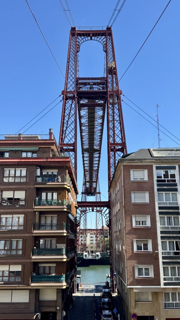 Das Highlight zum Schluss: die Biskaya-Brücke. Sie ist die älteste noch in Betrieb befindliche Schwebebrücke der Welt und zählt zum UNESCO-Weltkulturerbe. Für 55 Cent lasse ich mich mit ihr auf die andere Seite tragen – ein kurzer, fast schwebender Moment.