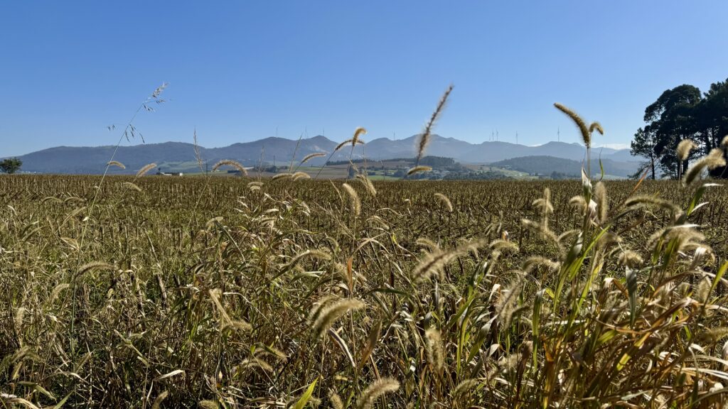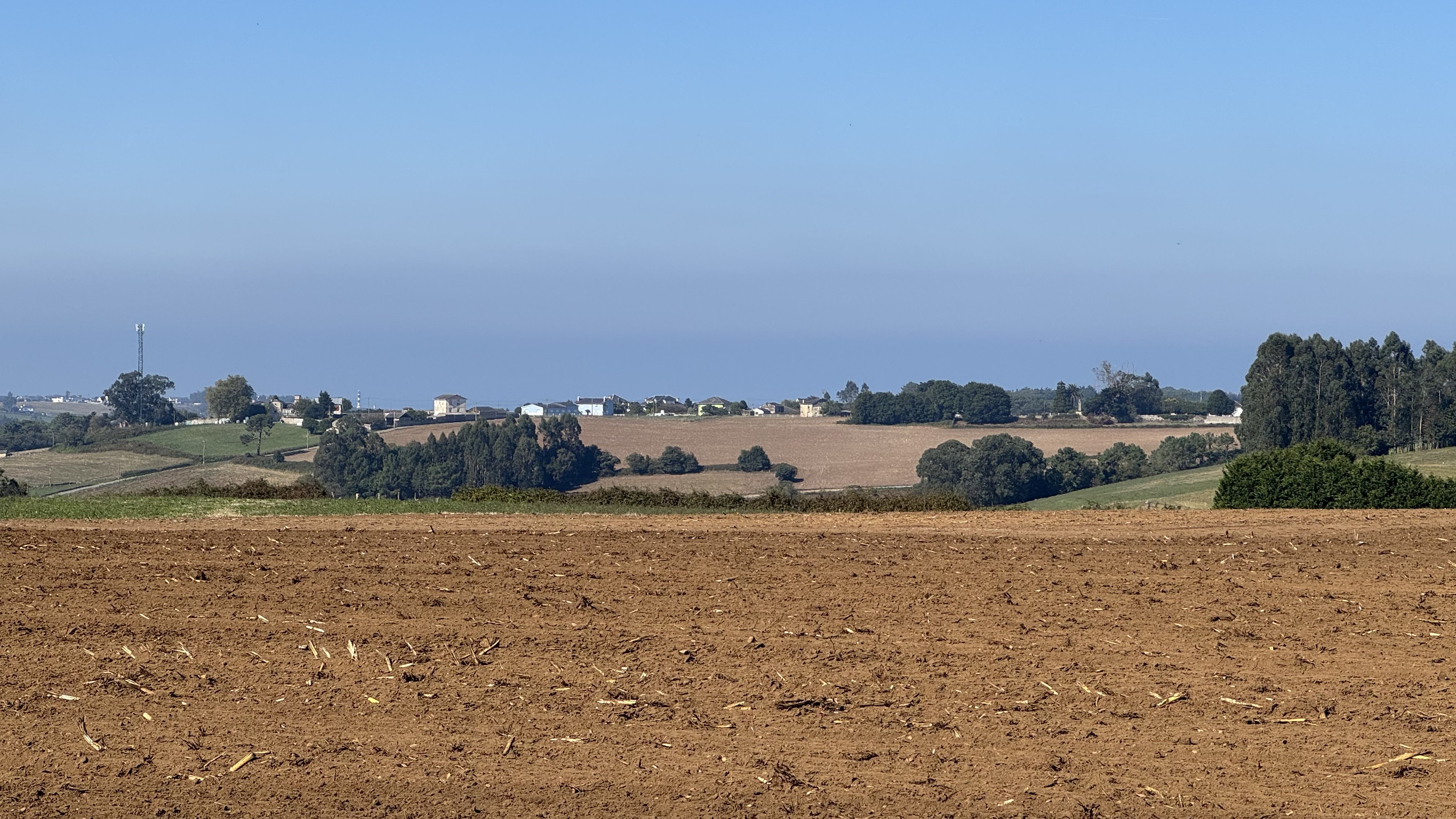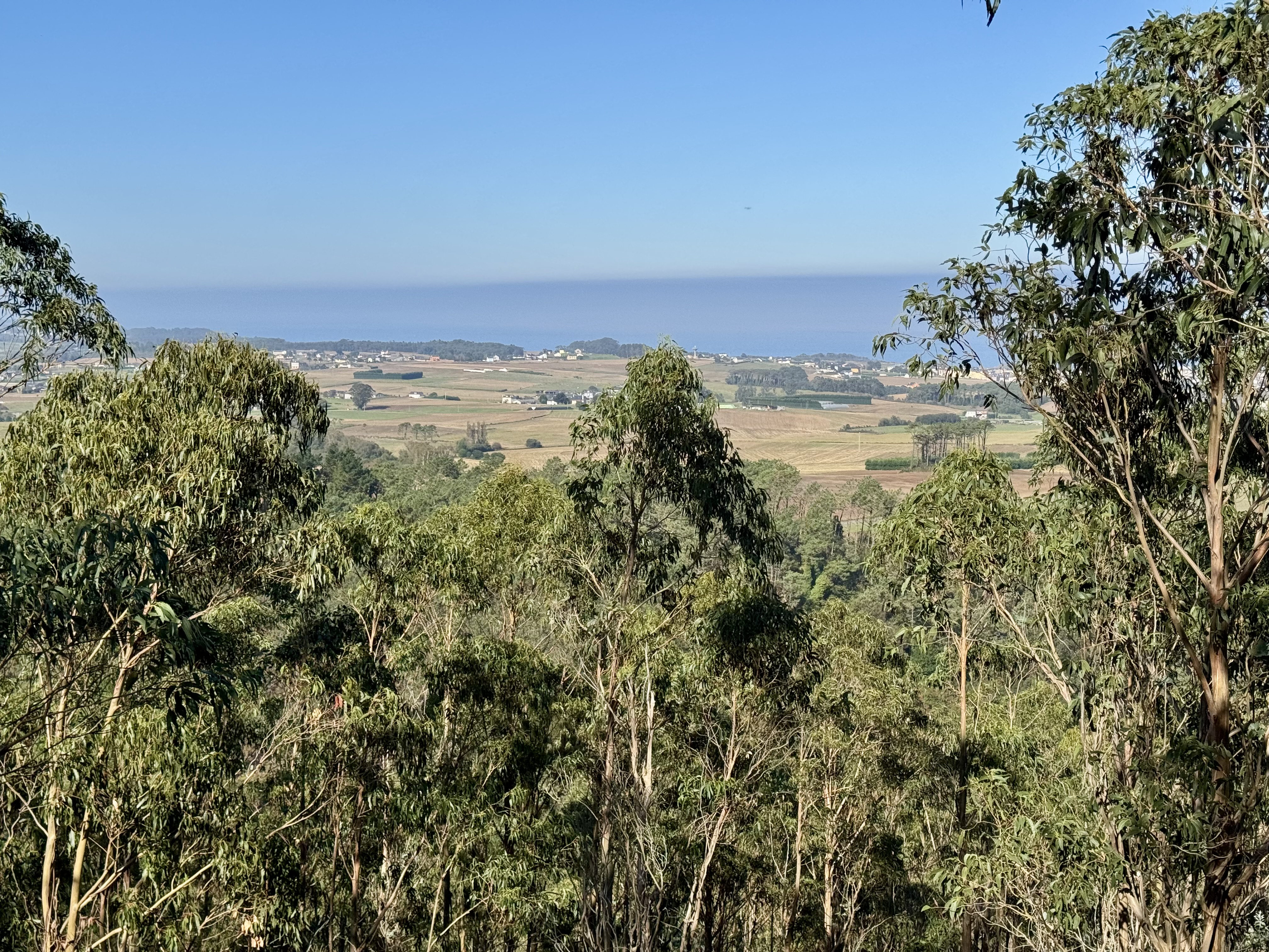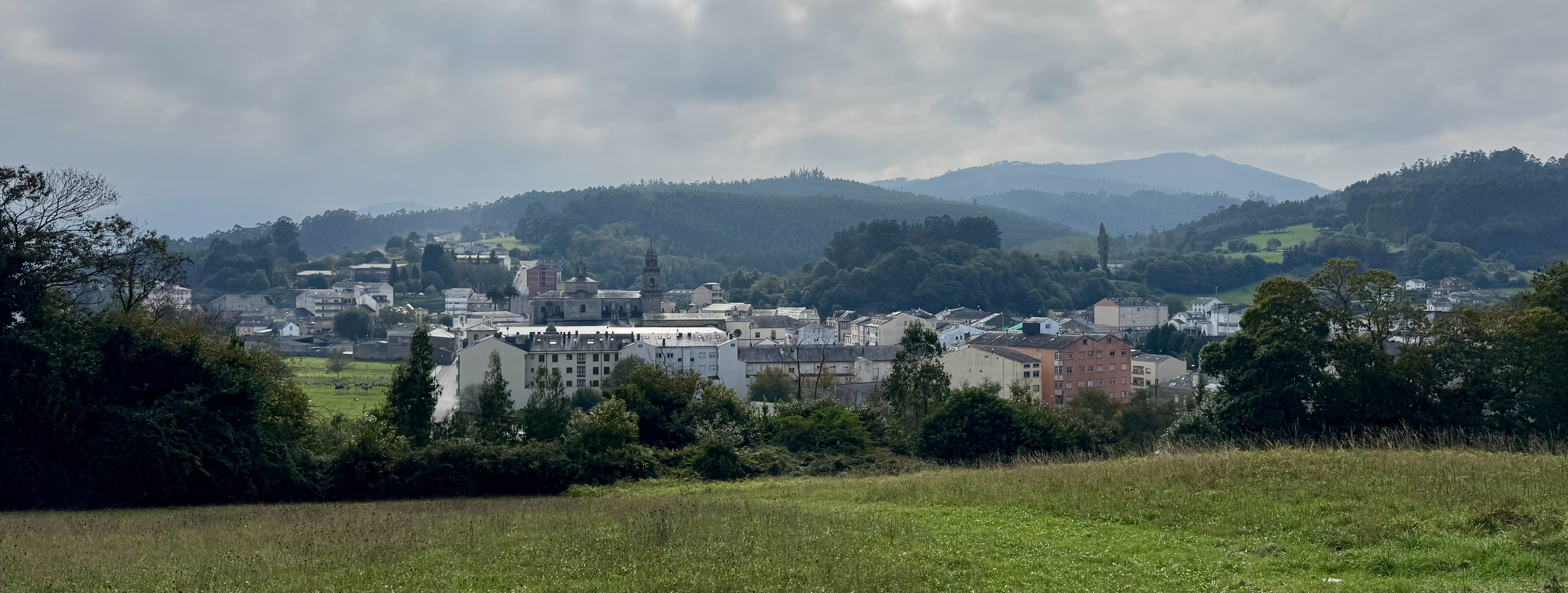 Schon kurz nach Ribadeo verändert sich die Landschaft grundlegend: Die Küste bleibt zurück, stattdessen bestimmen Felder, Wälder und weite Hügel das Bild.