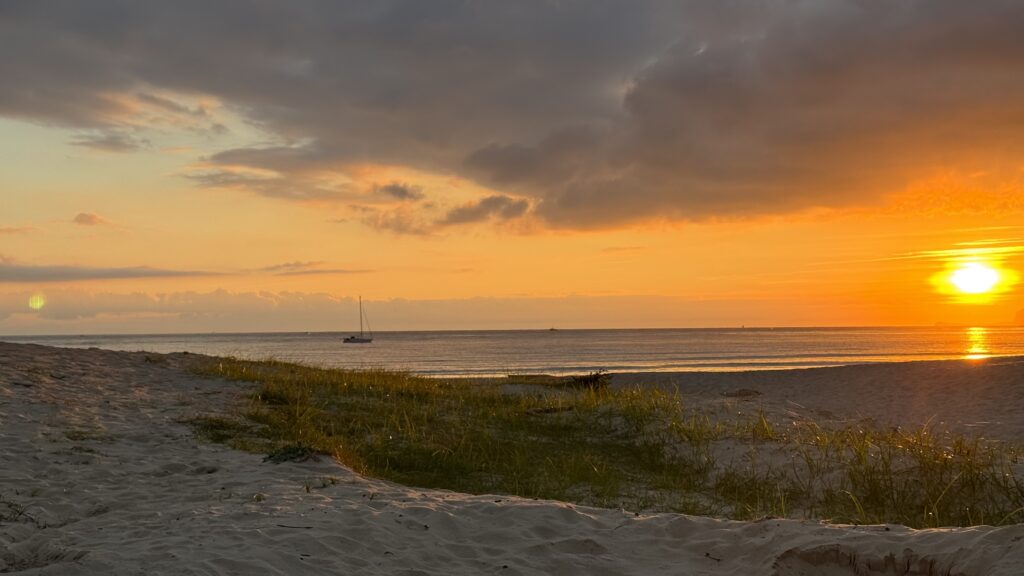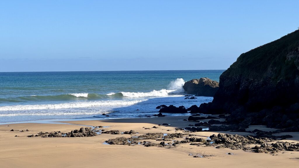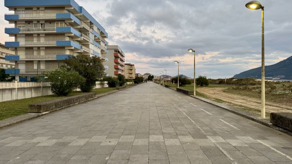 Ähnlich wie am Vortag treffe ich schon zu Beginn einen deutschen Pilger. Seit drei Jahren im Ruhestand, will er nach dem Portugiesischen Jakobsweg nun auch den Küstenweg erleben – trotz einer hartnäckigen Fußverletzung. Wir gehen ein Stück gemeinsam, tauschen Geschichten aus, bevor sich unsere Wege trennen. Mein Tempo ist schneller, und bald wandere ich wieder allein.