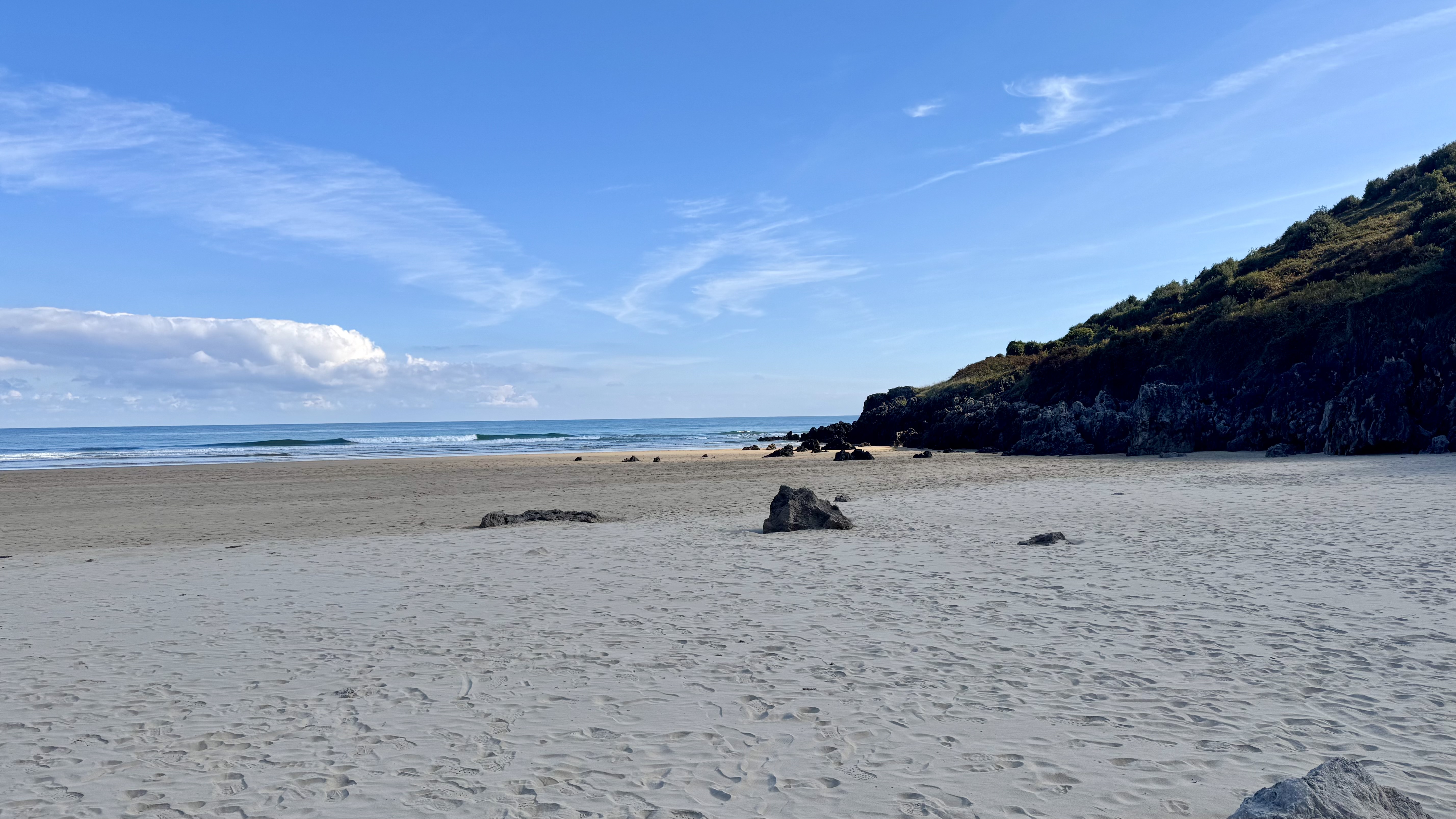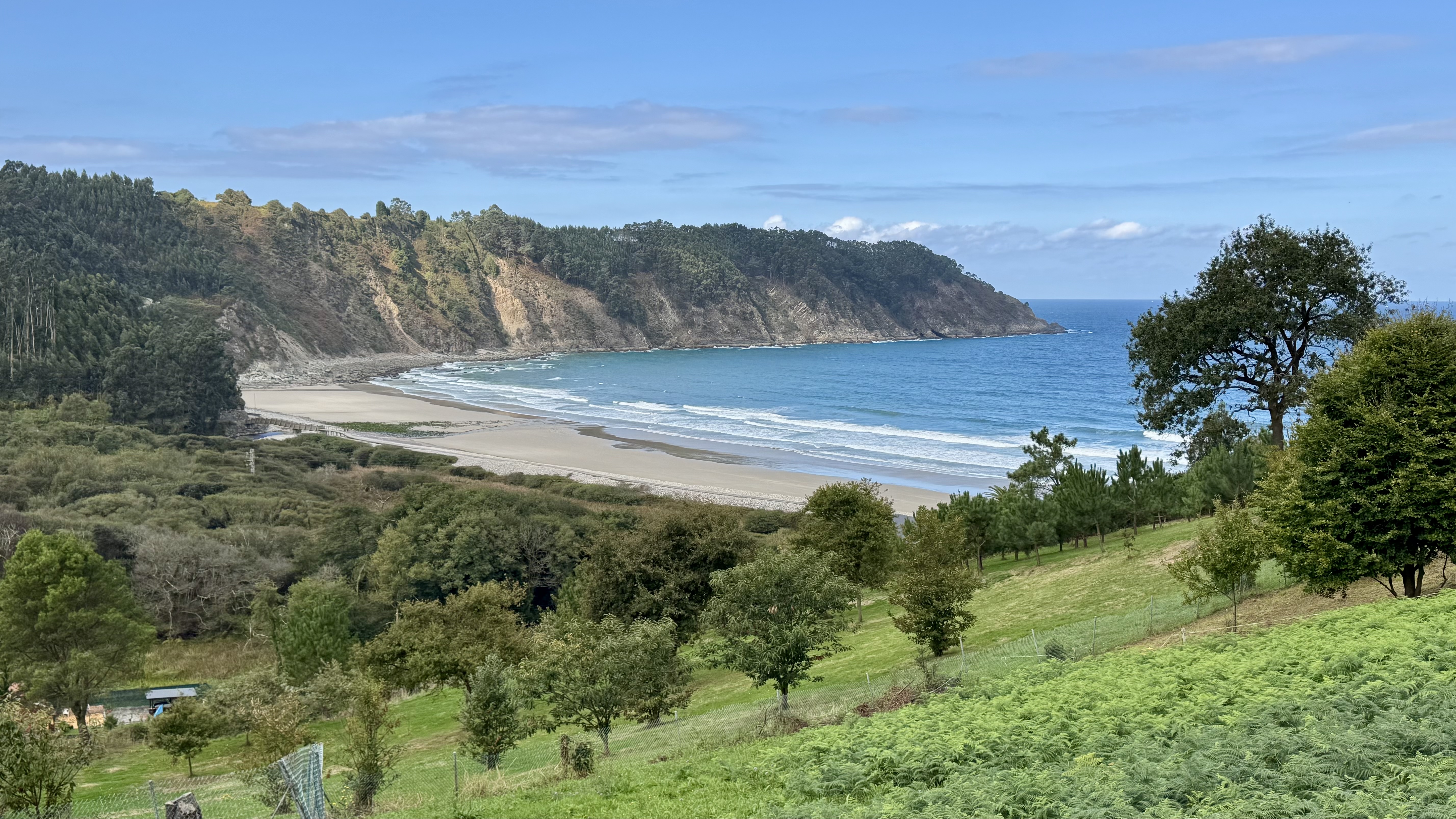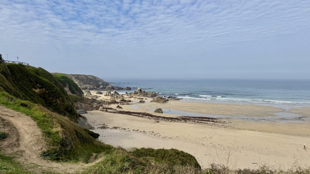 Die Freude steht mir ins Gesicht geschrieben – für solche Momente gehe ich. Der Pfad führt längere Zeit direkt an den Klippen entlang, bevor er wieder ins Landesinnere abbiegt. An einem Campingplatz kehre ich ein, gönne mir ein bocadillo und Kaffee und komme mit einem Kanadier ins Gespräch, der mir spannende Tipps für mögliche Kanada-Reisen gibt.