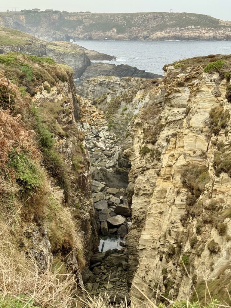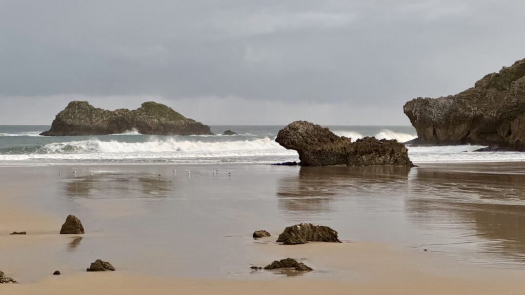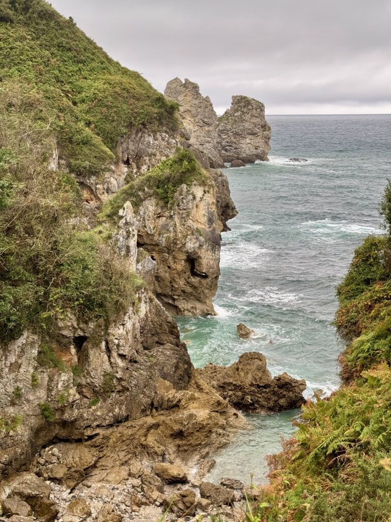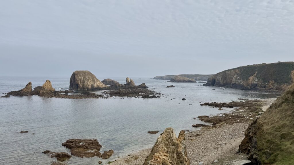 Der Weg führt mich auf eine Küstenvariante des Jakobswegs – ein Umweg von rund sechs Kilometern, den ich nur zu gern in Kauf nehme. Schon aus der Ferne sehe ich die Felsen, die aus dem Meer ragen – ein Vorgeschmack auf das, was mich erwartet.