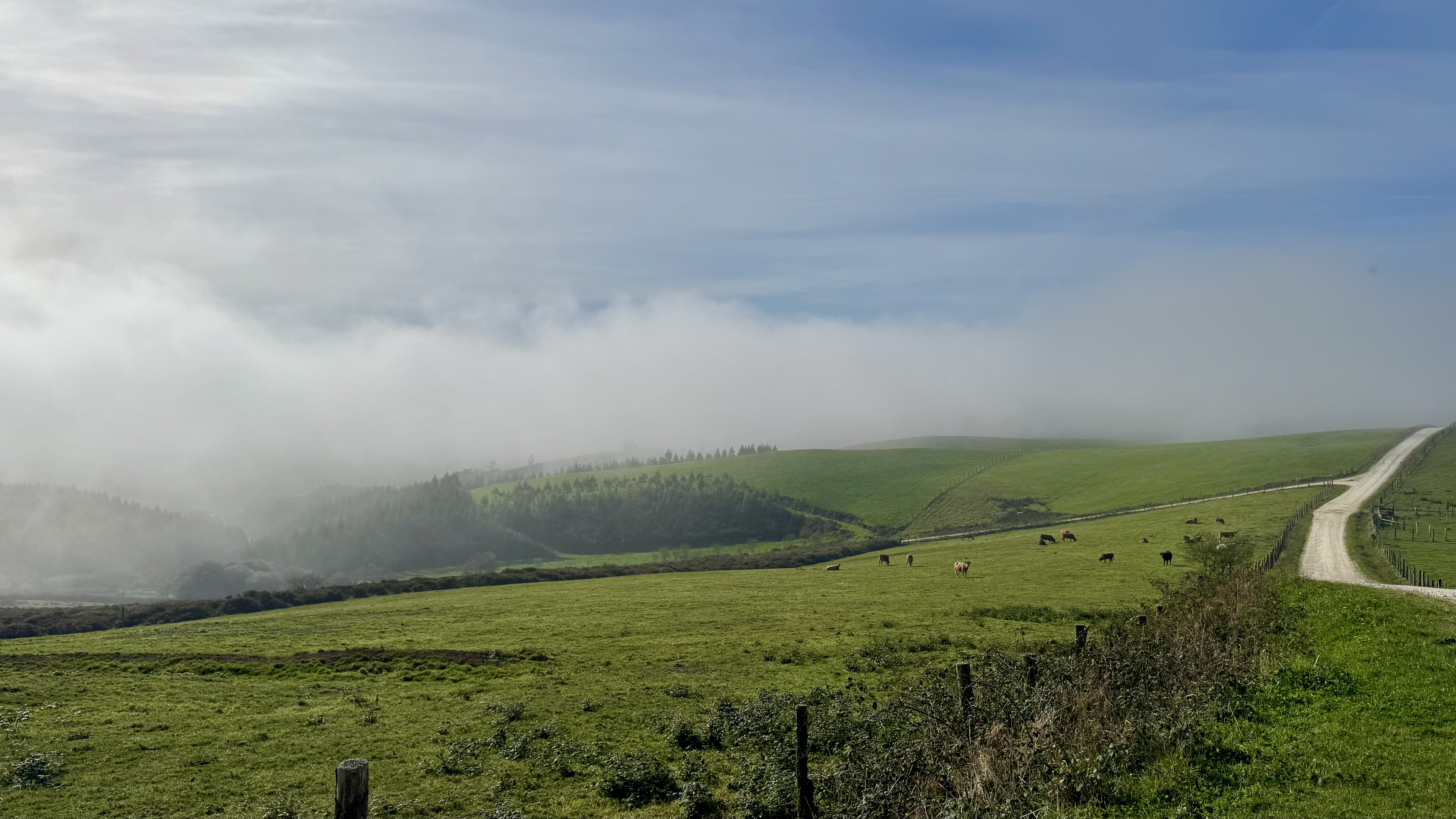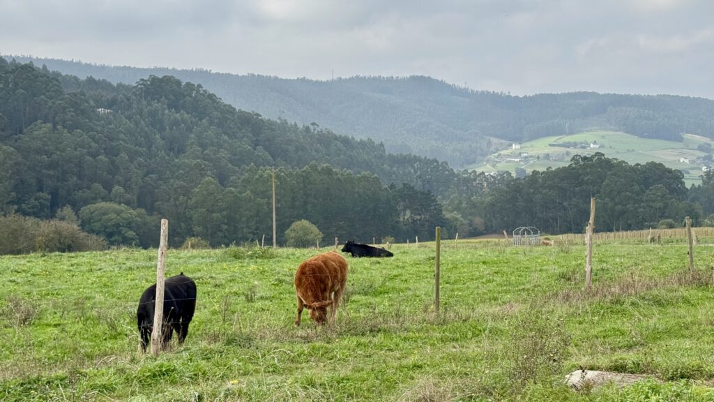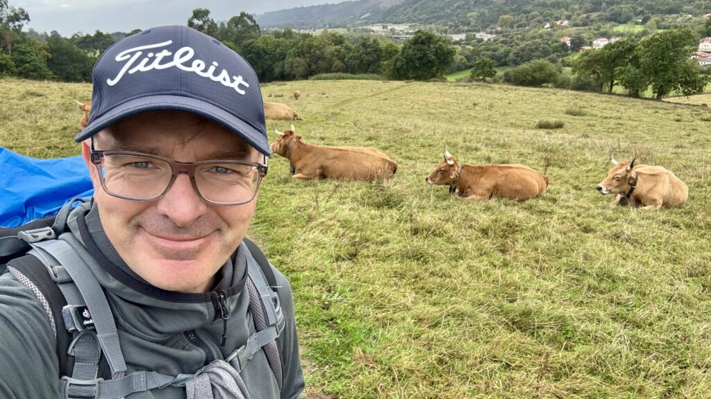 Es ist eine naturverbundene Etappe, die sich fast meditativ anfühlt. Kaum Autos, kaum Menschen – nur Kühe, so weit das Auge reichte, und hin und wieder ein Pilger auf dem Weg. Ein Mitpilger fragt mich unterwegs, ob heute wohl Feiertag sei – so still ist es ringsum.