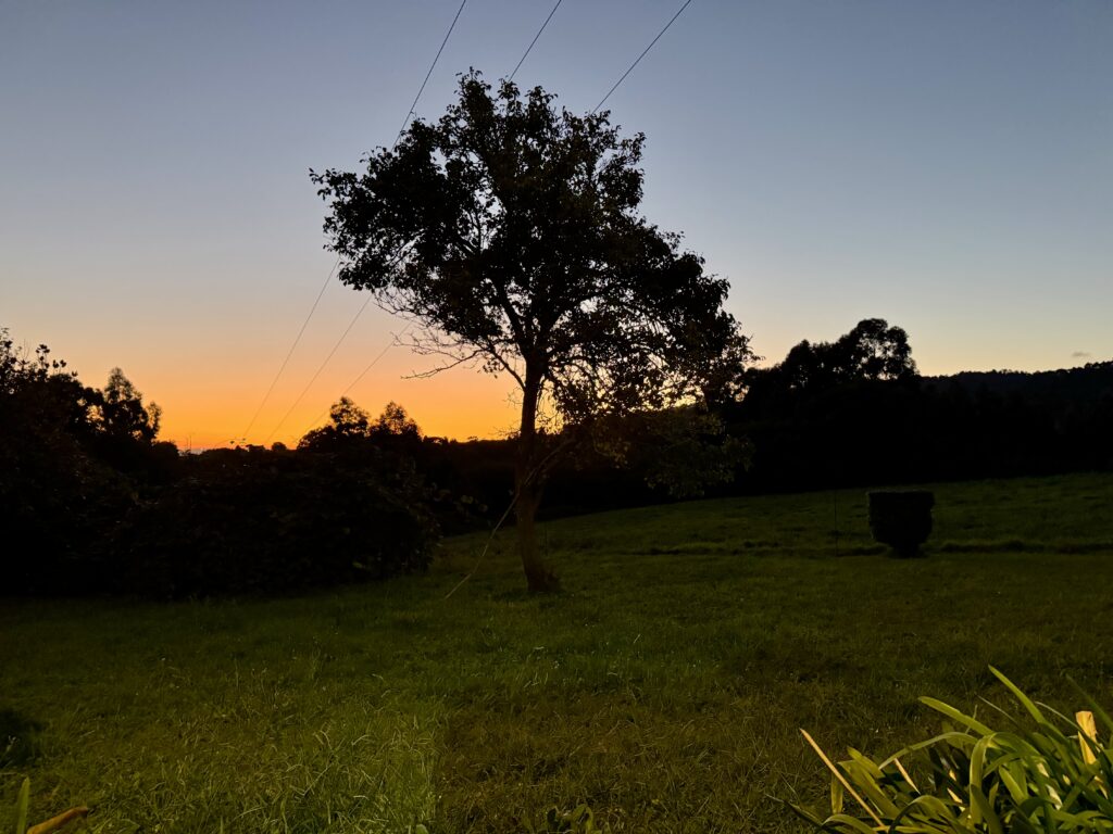 Das gemeinsame Abendessen gestern mit den anderen Pilgern war wunderbar. Ein Pilger aus Kolumbien, zwei aus Frankreich und zwei aus Deutschland – und dennoch funktionierte die Kommunikation auf Anhieb. Wir tauschten uns über unser Leben, unsere Familien, Berufe, Hobbys und sogar über die jeweiligen Gesundheitssysteme aus. Der Hospitalero verwöhnte uns mit einem typischen galicischen Drei-Gänge-Menü – inklusive Wein. Ein schöner, geselliger Abend, wie man ihn nur auf dem Jakobsweg erlebt.