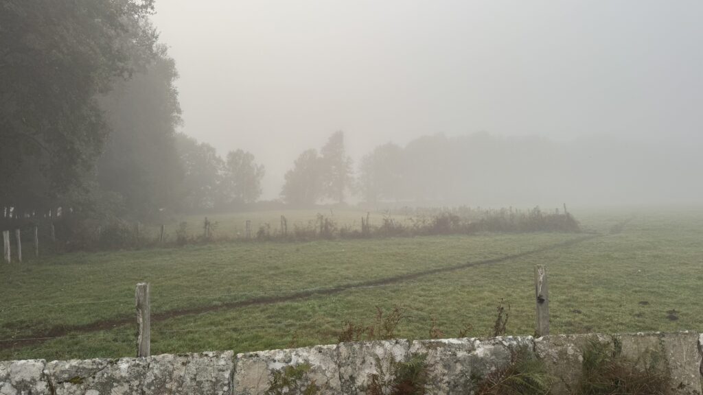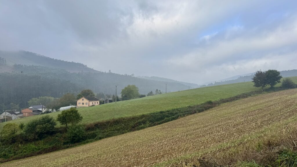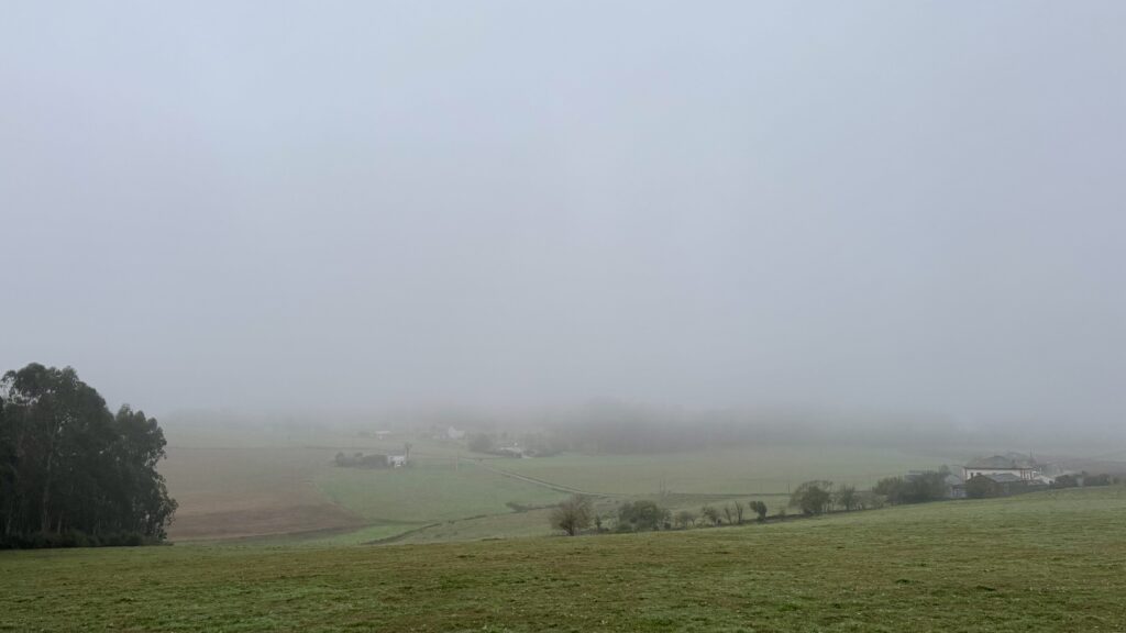 Der Abstieg nach Abadín führt dann flach und weit durch offene Landschaften, begleitet von herrlichem Sonnenschein. Mein Etappenziel As Paredes entpuppt sich als winziger Ort ohne Infrastruktur, dafür aber mit einer liebevoll renovierten privaten Herberge (Albergue O Xistral). Ein stiller Ort zum Durchatmen nach einem Tag voller Kontraste zwischen Nebel, Sonne und Einsamkeit.
