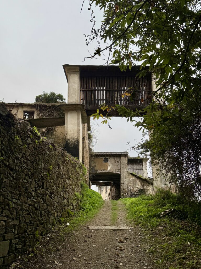 Der Himmel ist noch dunkel, und ohne Stirnlampe wäre der steile Anstieg durch das Waldstück kaum machbar. Der Weg zeigt sich zunächst so still und einsam wie am Vortag. Dabei ist mir aufgefallen, dass viele Häuser und Höfe leer stehen, viele davon im Verfall begriffen – ein trauriges, aber auch nachdenklich stimmendes Bild.