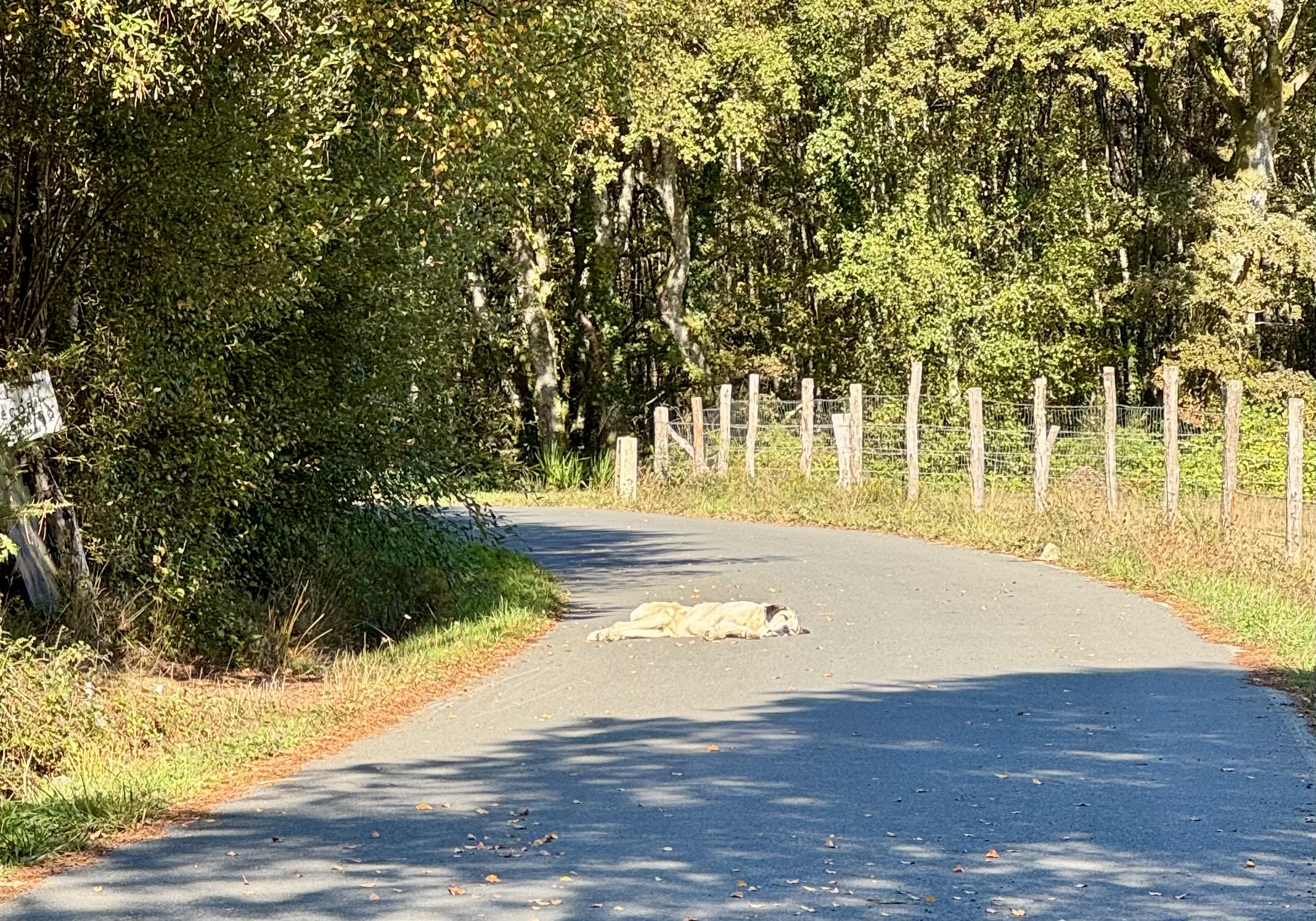 Am Nachmittag begegne ich insgesamt nur zehn Menschen, darunter nur drei Pilger. Selbst Hunde, die sonst aufgeregt bellen, wenn man vorbeizieht, schlafen auf der Straße.