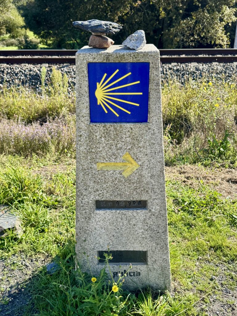 Eigentlich zeigt er 99,994 km an, doch für mich ist klar: Die letzten 100 Kilometer haben begonnen. Ab jetzt heißt es, jeden Tag zwei Stempel im Pilgerpass zu sammeln – das letzte Kapitel meiner Reise hat begonnen.