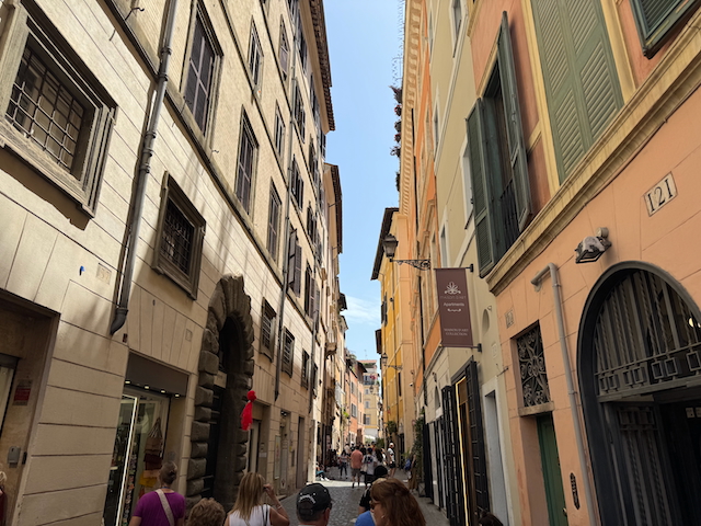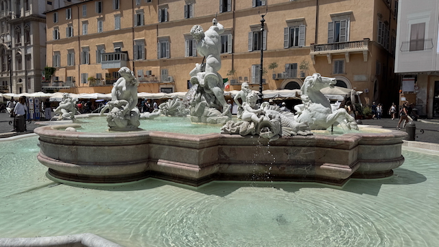 Weiter durch die Via dei Coronari, einst das Zentrum der Antiquitätenhändler, jetzt voller Boutiquen und Geschichte, erreichen wir die prachtvolle Piazza Navona – erbaut auf dem Stadion des Domitian. Ihre drei Brunnen, allen voran der Vierströmebrunnen von Bernini, erzählen von den damaligen Weltreichen und Wasserkunst.