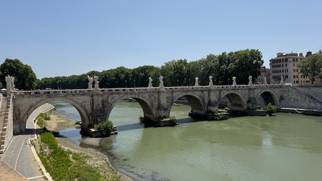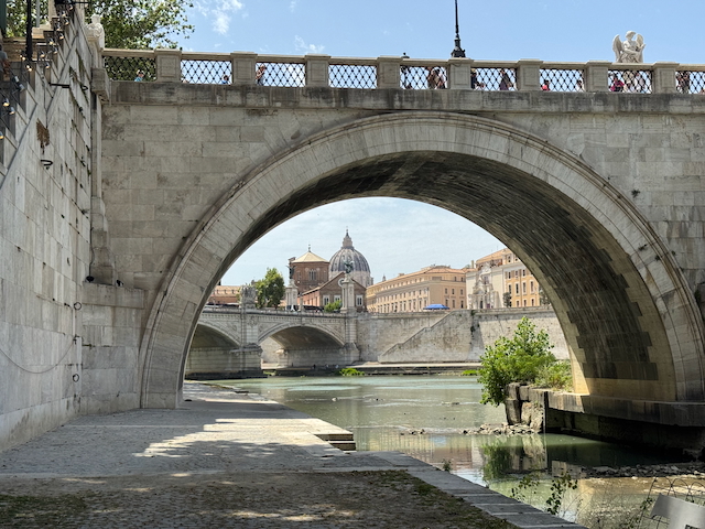 Entlang der Via della Conciliazione zur Engelsburg, wo uns der geheimnisvolle Passetto di Borgo, der Fluchtweg der Päpste, fasziniert. Die Engelsbrücke – flankiert von barocken Engelsfiguren aus der Werkstatt Berninis – bietet ein Panorama über den Tiber, das in seiner Dramatik kaum zu übertreffen ist.
