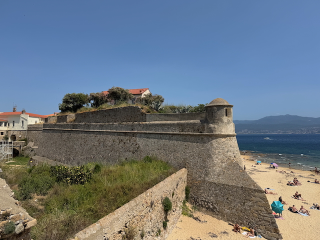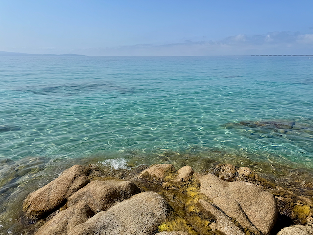 Zum Abschluss: ein Bad im glasklaren Wasser des Stadtstrandes. Korsika hat uns in den Bann gezogen – wir kommen wieder, mit mehr Zeit im Gepäck.
