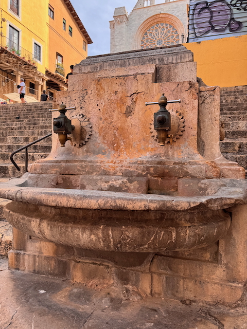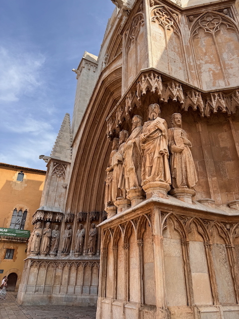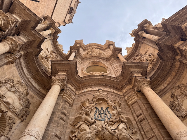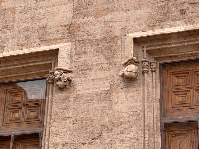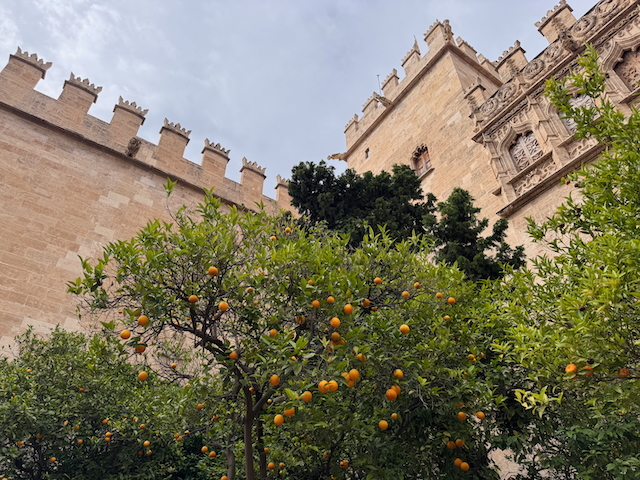 In der Lonja de la Seda – der mittelalterlichen Seidenbörse – bestaunen wir filigrane Architektur und den mit Orangenbäumen geschmückten Garten im Innenhof, der zum Verweilen einlädt. An der Außenfassende entdecken wir mit Schmunzeln groteske Skulpturen, die uns ihr Hinterteil entgegenstrecken.
