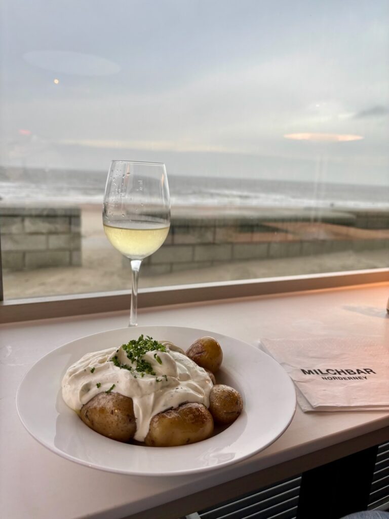 Mein erster Weg führt mich fast immer in die Milchbar. Ankommen. Durchatmen. Den Blick über das Meer schweifen lassen, am liebsten mit einem Glas Aperol Spritz oder einem kühlen Weißwein in der Hand. Für mich gibt es kaum einen besseren Ort, um wirklich auf Norderney anzukommen.
