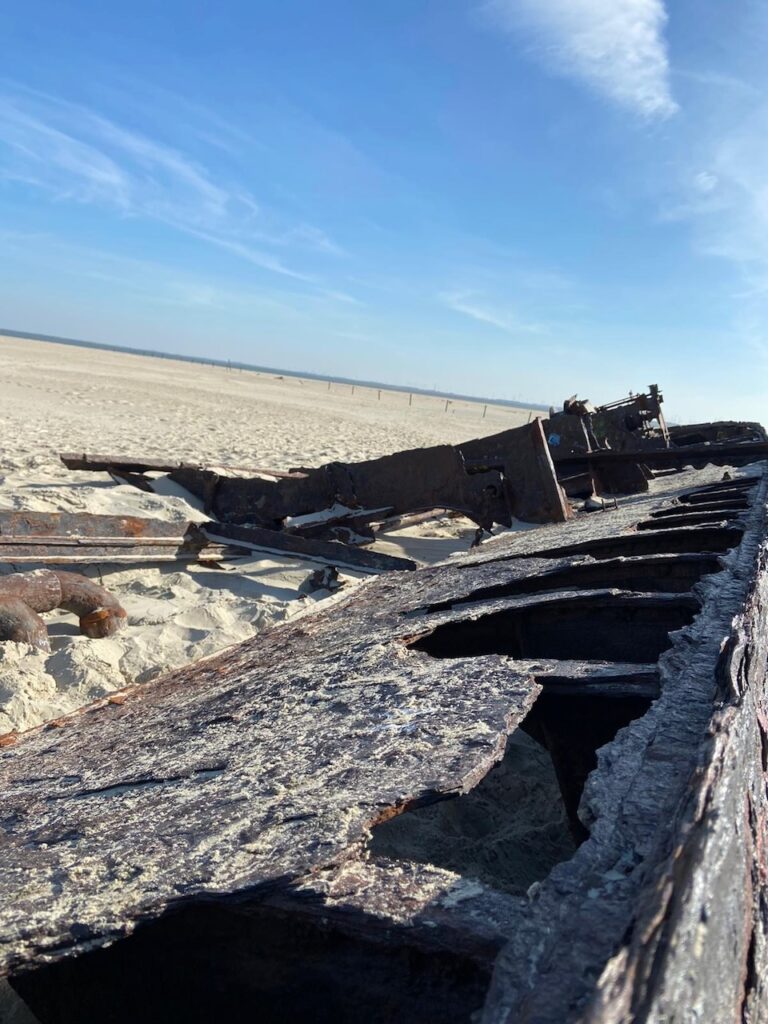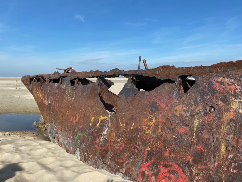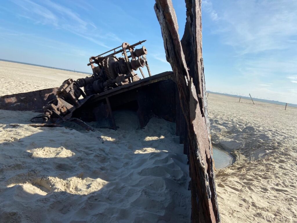 - Etwas mehr Zeit sollte man für den Weg zum Wrack einplanen. Der Spaziergang ist länger als man denkt, wird aber belohnt: Vom Wrack aus hat man einen traumhaften Blick auf die Insel Baltrum